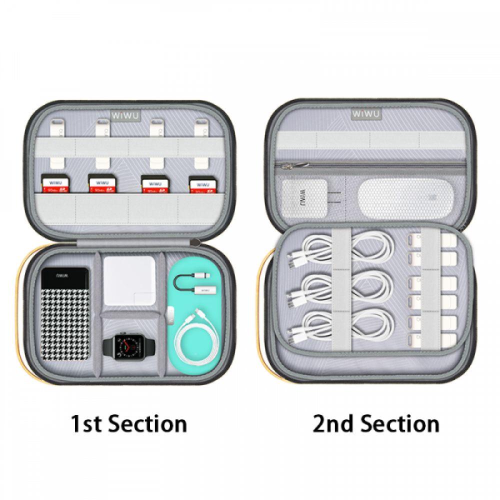 مقسمة تقسيم ممتاز بعدة جيوب ل: - للكيابل + مكان مناسب للاشياء الكبيرة نوعا ما مثل الشاحن المتنقل + مكان للبطايق + سحاب داخلي وخارجي.
